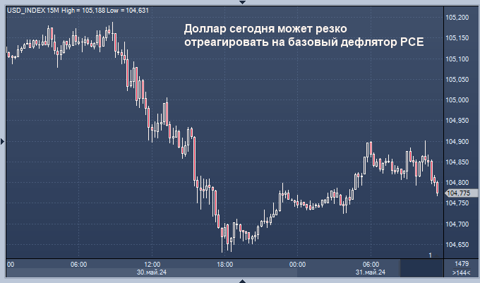 "Зависимость ФРС от данных означает, что апрельский базовый дефлятор PCE станет важным фактором, если он отклонится от консенсус-прогноза на 0,3% в месячном исчислении", - сказал Крис Тернер, глава отдела рынков в ING.