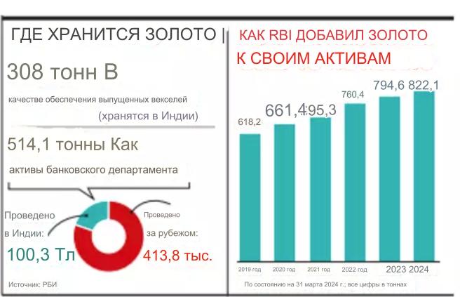 Согласно последним данным, на конец марта у РБИ было 822,1 тонны золота, из которых 413,8 тонны находились за границей. Он входит в число центральных банков, которые покупали золото в последние годы: за последний финансовый год он добавил 27,5 тонны.