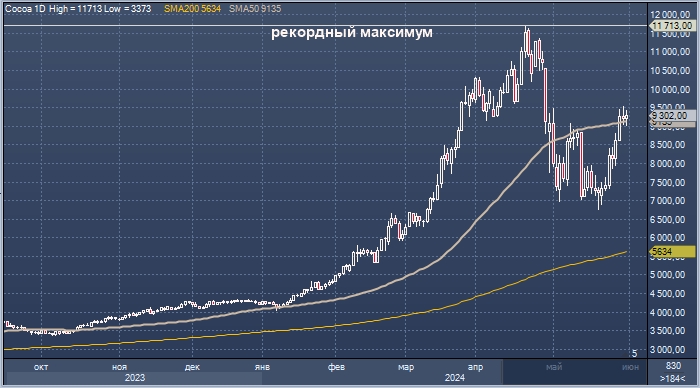В этом году цены выросли более чем вдвое, поскольку из-за неурожаев в Западной Африке мир столкнулся с большим дефицитом какао-бобов. Хотя цены на фьючерсы упали с рекордно высокого уровня, установленного в апреле, в последнее время они растут, поскольку в некоторых регионах Африки не хватает осадков.