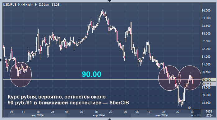 Курс валютной пары доллар/рубль, вероятно, останется около уровня 90 руб./$1 в ближайшей перспективе, полагают аналитики SberCIB Investment Research.
