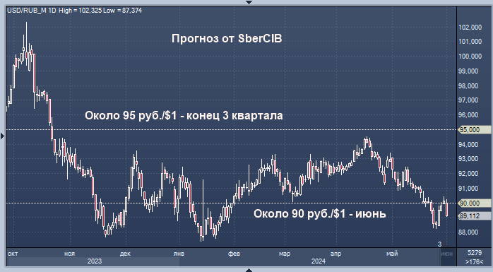 Рубль в июне, вероятно, будет торговаться около 90 руб./$1, полагает аналитик SberCIB Investment Research. Юрий Попов.