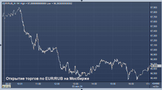 - 96,8721 рубля за 1 евро
