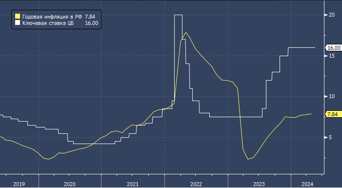 Bloomberg: апрельская инфляция в России указывает, что не стоит ждать снижения ставок до конца года