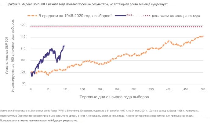 Хотя может быть слишком оптимистично ожидать, что акции достигнут новых рекордных максимумов в преддверии ноябрьских выборов в США, дальнейший рост, связанный с выборами, выглядит вероятным в 2025 году, по данным Wells Fargo.