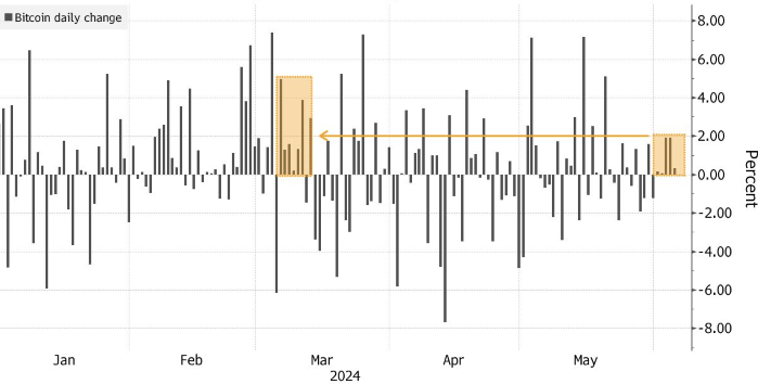 Ценовая динамика биткоина по дням. Источник: Bloomberg