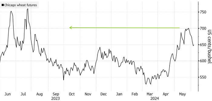 Пшеница дорожает из-за неблагоприятных условий и геополитической обстановки. Источник: Bloomberg