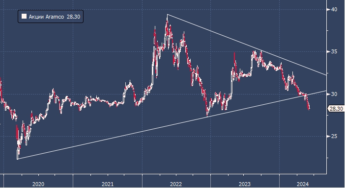 Хотя это находится в нижней половине предложенного диапазона от 26,70 риалов до 29 риалов, акции Aramco торгуются ниже верхней границы с момента объявления о сделке в воскресенье. В четверг они закрылись на уровне 28,30 риалов, после того как в дни, предшествовавшие предложению, упали до самого низкого уровня более чем за год.