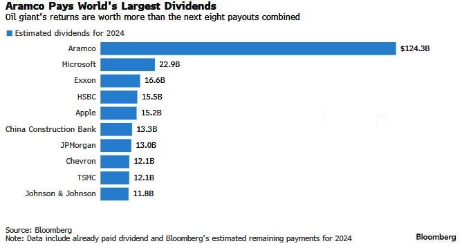 Aramco выплачивает крупнейшие в мире дивиденды — доходы нефтяного гиганта превышают все последующие восемь выплат вместе взятых.