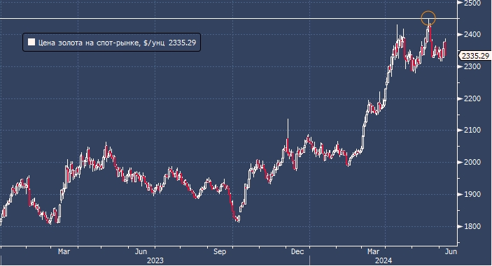 В мае цена на золото взлетела до рекордно высокого уровня, превысив 2450 долларов за унцию, чему способствовали активные покупки золота центральными банками. Спрос со стороны Народного банка Китая возник в связи с тем, что вторая по величине экономика мира стремится диверсифицировать свои резервы и защититься от обесценивания валюты.