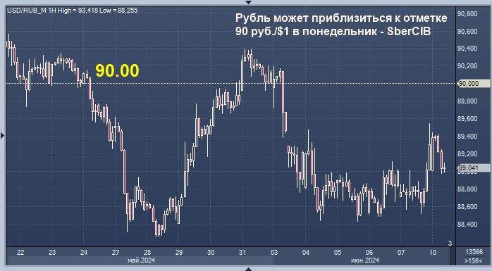 Рубль может приблизиться к отметке 90 руб./$1 в понедельник, считают аналитики SberCIB Investment Research.