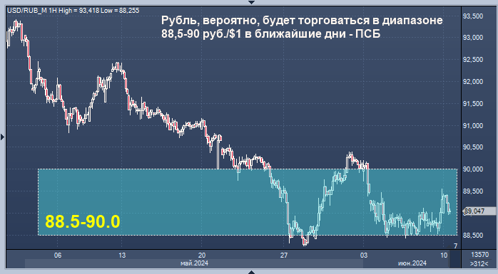 Валютная пара доллар/рубль, вероятно, будет торговаться в диапазоне 88,5-90 руб./$1 в ближайшие дни, полагает начальник отдела экономического и отраслевого анализа Промсвязьбанка (ПСБ) Евгений Локтюхов.
