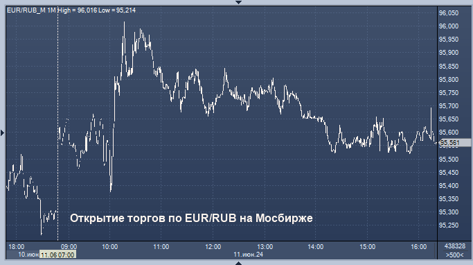 - 95,7391 рубля за 1 евро