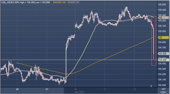 Доллар США был самой слабой валютой среди представителей Большой десятки, терял в цене против всех основных конкурентов и против более чем половины валют стран с развивающимися экономиками после публикации отчета по потребительской инфляции в США по итогам мая.