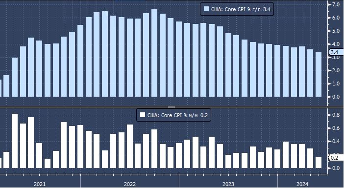 - Core CPI г/г: в мае +3,4%, в апреле +3,5%