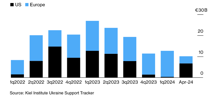 Сколько денег тратят западные страны на финансовую помощь Украине. Источник: Bloomberg