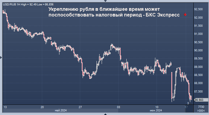 Укреплению рубля в ближайшее время может поспособствовать налоговый период, полагает эксперт БКС Экспресс Дмитрий Бабин.