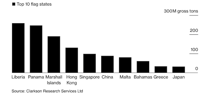 Под флагами каких стран ходят суда. Источник: Bloomberg