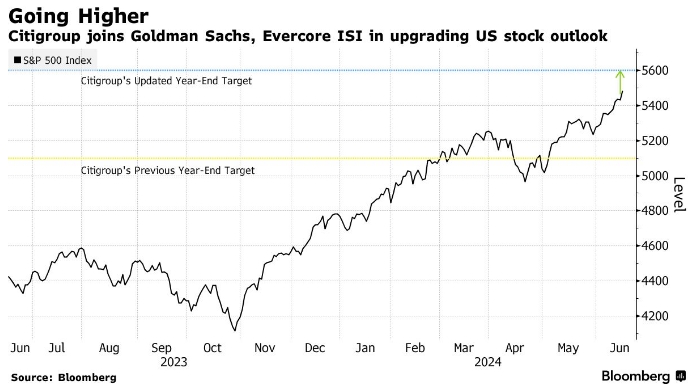 Повышение рейтинга Citigroup произошло после того, как Джулиан Эмануэль из Evercore повысил свой прогноз по S&P 500 на конец года до 6 000 на фоне энтузиазма по поводу искусственного интеллекта, что значительно отличается от его предыдущего прогноза в 4 750, который предусматривал коррекцию до закрытия 2024 года.