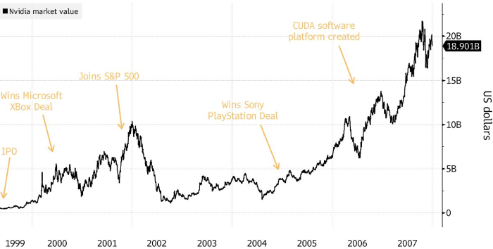 Вот что происходило с Nvidia от ее IPO до настоящего времени.