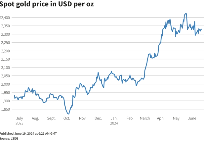 По состоянию на 08:52 GMT спотовое золото выросло на 0,2% до $2 332,09 за унцию. Американские фьючерсы на золото были стабильны на уровне $2 346,80.
