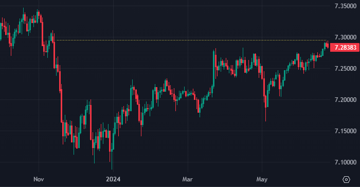 Курс доллара к офшорному юаню (USDCNH) интервалами 1 день