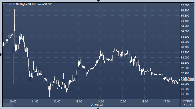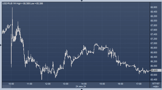 Таким образом, по официальному курсу ЦБ доллар упал к рублю на 58 копеек, евро упал к рублю на 19 копеек, а китайский упал к рублю на 19 копеек по сравнению с официальным курсом субботы. Объем торгов на Московской бирже к 17:33 мск понедельника составил 802,6942 млрд рублей или 9 125,7253 млн долларов долларов.