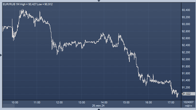 Таким образом, по официальному курсу ЦБ доллар вырос к рублю на 53 копейки, евро вырос к рублю на 38 копеек, а китайский вырос к рублю на 6 копеек по сравнению с официальным курсом среды. Объем торгов на Московской бирже к 17:24 мск среды составил 802,4380 млрд рублей или 9 194,1523 млн долларов.