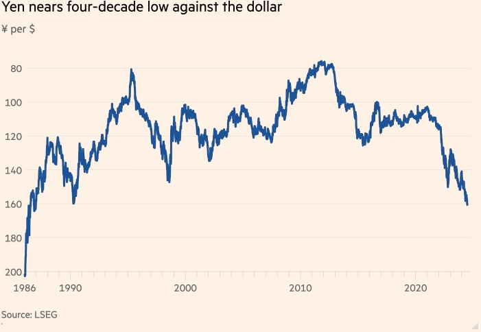 Рост курса иены до 151,85 иены за доллар в начале мая после предыдущего вмешательства Японии в рынок вскоре сменился дальнейшим ослаблением, поскольку инвесторы сосредоточились на зияющем разрыве между процентными ставками в США и Японии.