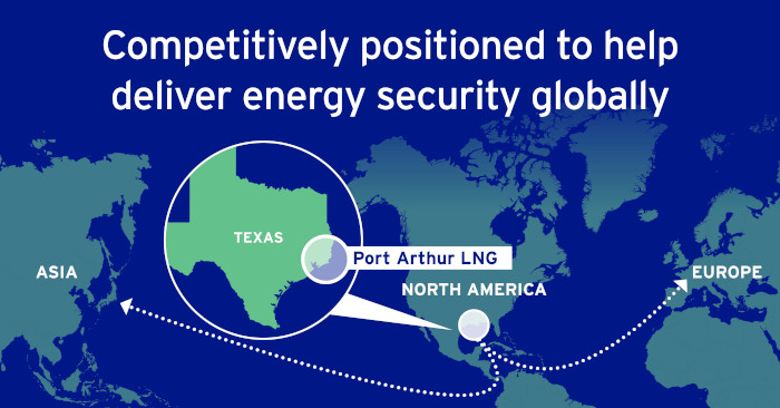 Фаза 1 проекта Port Arthur LNG — экспортный терминал в юго-восточном Техасе с прямым доступом к Мексиканскому заливу — находится в стадии строительства и состоит из первой и второй очередей, а также двух резервуаров для хранения СПГ и сопутствующей инфраструктуры.
