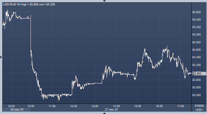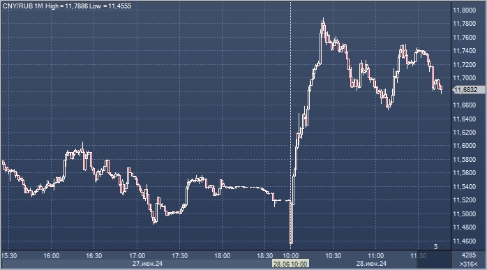Таким образом, по официальному курсу ЦБ доллар упал к рублю на 2 рубля 84 копейки, евро упал к рублю на 3 рубля 13 копеек, а китайский упал к рублю на 40 копеек по сравнению с официальным курсом четверга. Объем торгов на Московской бирже к 17:26 мск четверга составил 1 038,6044 млрд рублей или 11 828,3449 млн долларов.