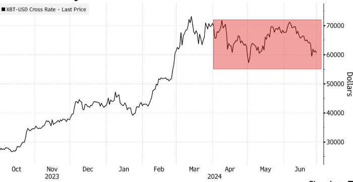 Ралли биткоина застопорилось. Источник: Bloomberg