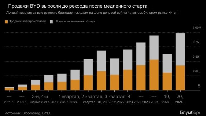 Что касается исключительно электромобилей, то квартальные продажи автогиганта из Шэньчжэня в размере 426 000 единиц позволили ему обогнать Tesla Inc. в качестве крупнейшего продавца электромобилей во всем мире. Tesla, которая, по прогнозам аналитиков, во втором квартале продаст 439 301 электромобиль, переживает спад продаж на ключевых рынках, таких как Китай и Европа.