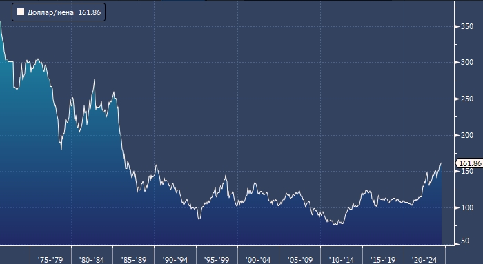 Иена упала примерно на 0,2 % и достигла отметки 161,875 за доллар впервые с декабря 1986 года, и примерно на столько же снизилась по отношению к евро, достигнув исторического минимума 173,80.