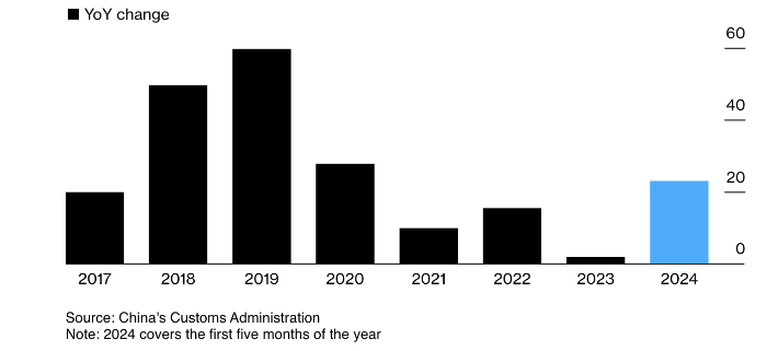 Импорт говядины в Китай вырос впервые с 2022 года. Источник: Bloomberg