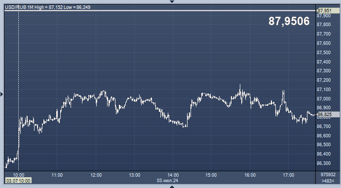 Таким образом, по официальному курсу ЦБ доллар упалк рублю на 4 копейки, евро выроск рублю на 89 копеек, а китайский упал к рублю на 1 копейку по сравнению с официальным курсом среды. Объем торгов на Московской бирже к 17:35 мск среды составил 778,2480 млрд рублей или 8 844,5217 млрд рублей или 9 563,5480 млн долларов.