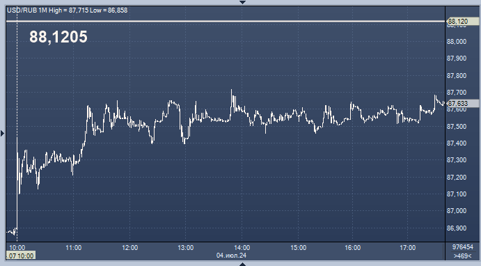 Рубль подешевел утром, а после 12 встал на якорь. Вероятно, экспортерам после окончания налогового периода не нужно активно продавать валюту.