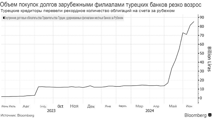 По словам Туфана Комерта, стратега по развивающимся рынкам в BBVA в Лондоне, покупки долговых обязательств зарубежными филиалами турецких кредиторов увеличили показатели притока иностранного капитала для лировых облигаций, но «это не полностью зарубежные инвестиции».