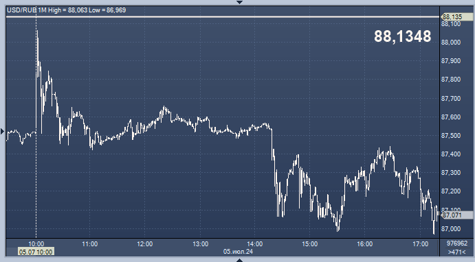 Иностранная валюта растеряла утренний рост и развернулась вниз после обеда в пятницу. Рубль перешел к небольшому укреплению на закрытии позиций перед выходными днями, сообщает Интерфакс. Кроме того, позитивное влияние на котировки нацвалюты оказала новость о состоянии российского бюджета.