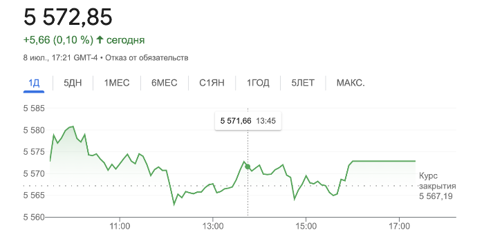 В понедельник индекс торговался выше этого уровня, показав пятый подряд дневной рост — это самая длинная серия роста с января.