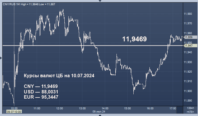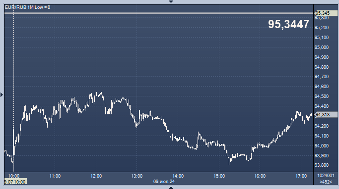Рубль незначительно дешевеет к вечеру на фоне сильного падения фондового рынка. Давление со стороны нефти также присутствует. Экспортеры сейчас малоактивны, по всей видимости. Федеральный бюджет РФ в январе-июне 2024 года исполнен, по предварительной оценке, с дефицитом 929 млрд рублей, или 0,5% ВВП, сообщается в пресс-релизе Минфина. Поправками в закон о бюджете текущего года, которые находятся на рассмотрении в Госдуме, дефицит предусмотрен в размере 2,12 трлн рублей, или 1,1% ВВП. В январе-мае дефицит, по уточненной информации казначейства, составлял 730,4 млрд рублей.