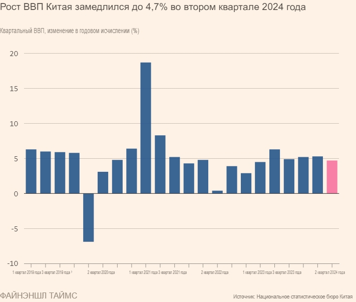 Экономика Китая выросла на 4,7 процента в годовом исчислении во втором квартале, показали официальные данные в понедельник, не оправдав прогнозов и продемонстрировав более низкие темпы роста по сравнению с предыдущими тремя месяцами.