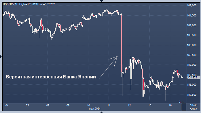 Японские власти не подтверждают факт проведения интервенций, но главный секретарь кабинета министров Ёсимаса Хаяси заявил, что Япония готова предпринять все возможные шаги для противодействия чрезмерно волатильным движениям валют.