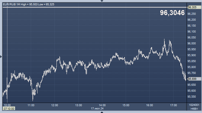 Таким образом, по официальному курсу ЦБ доллар упал к рублю на 20 копеек, евро вырос к рублю на 4 копейки, а китайский юань вырос к рублю на 1 копейку по сравнению с официальным курсом среды. Объем торгов на Московской бирже к 17:39 мск среды составил 647,2799 млрд рублей или 7 331,9250 млн долларов.