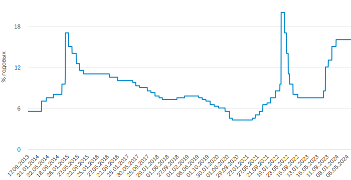 26 июля Банк России повысит ключевую ставку на 200 б.п. до 18%, прогнозирует Bloomberg Economics. В последний раз регулятор делал это в декабре 2023 г., когда ставка была повышена на 100 б.п. до текущих 16%.