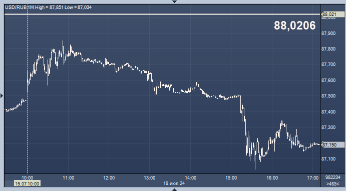 Китайский юань перешел к небольшому снижению на Московской бирже днем в пятницу, рубль развернулся вверх и слегка дорожает на закрытии позиций перед выходными днями. Позитивное влияние на курс рубля также оказывает подготовка экспортеров к налоговым выплатам. Через неделю в понедельник, 29 июля, им предстоит перечислить в бюджет НДФЛ, налог на прибыль, НДПИ, НДС, страховые взносы, акцизы и НДД.