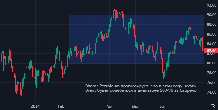 Bharat Petroleum прогнозирует, что в этом году нефть Brent будет колебаться в диапазоне $80–90 за баррель.