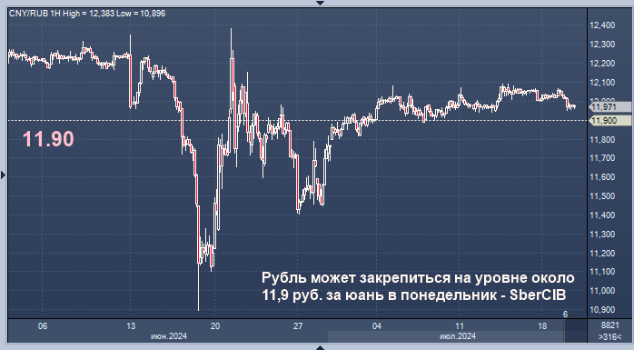 Курс валютной пары юань/рубль может закрепиться около уровня в 11,9 руб. за юань на торгах в понедельник, считают аналитики SberCIB Investment Research.