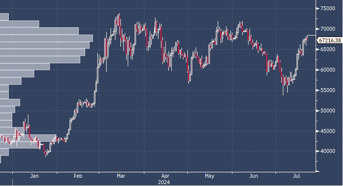 Биткоин поднялся до самого высокого уровня более чем за месяц, поскольку трейдеры пытались оценить последствия решения президента США Джо Байдена отказаться от участия в президентских выборах.