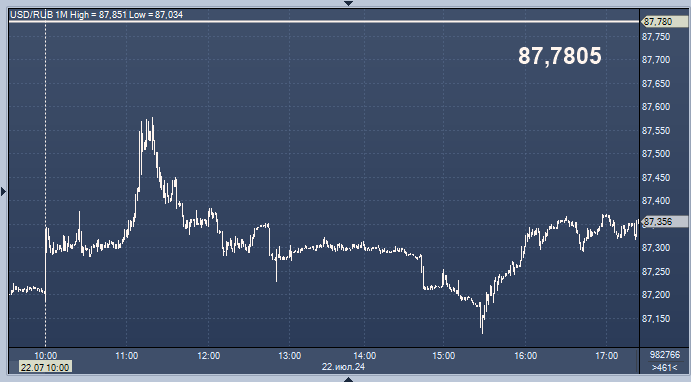 - 87,7805 рубля за 1 доллар