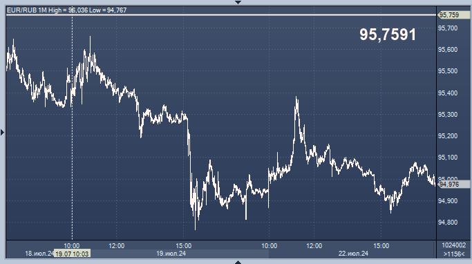 - 95,7591 рубля за 1 евро